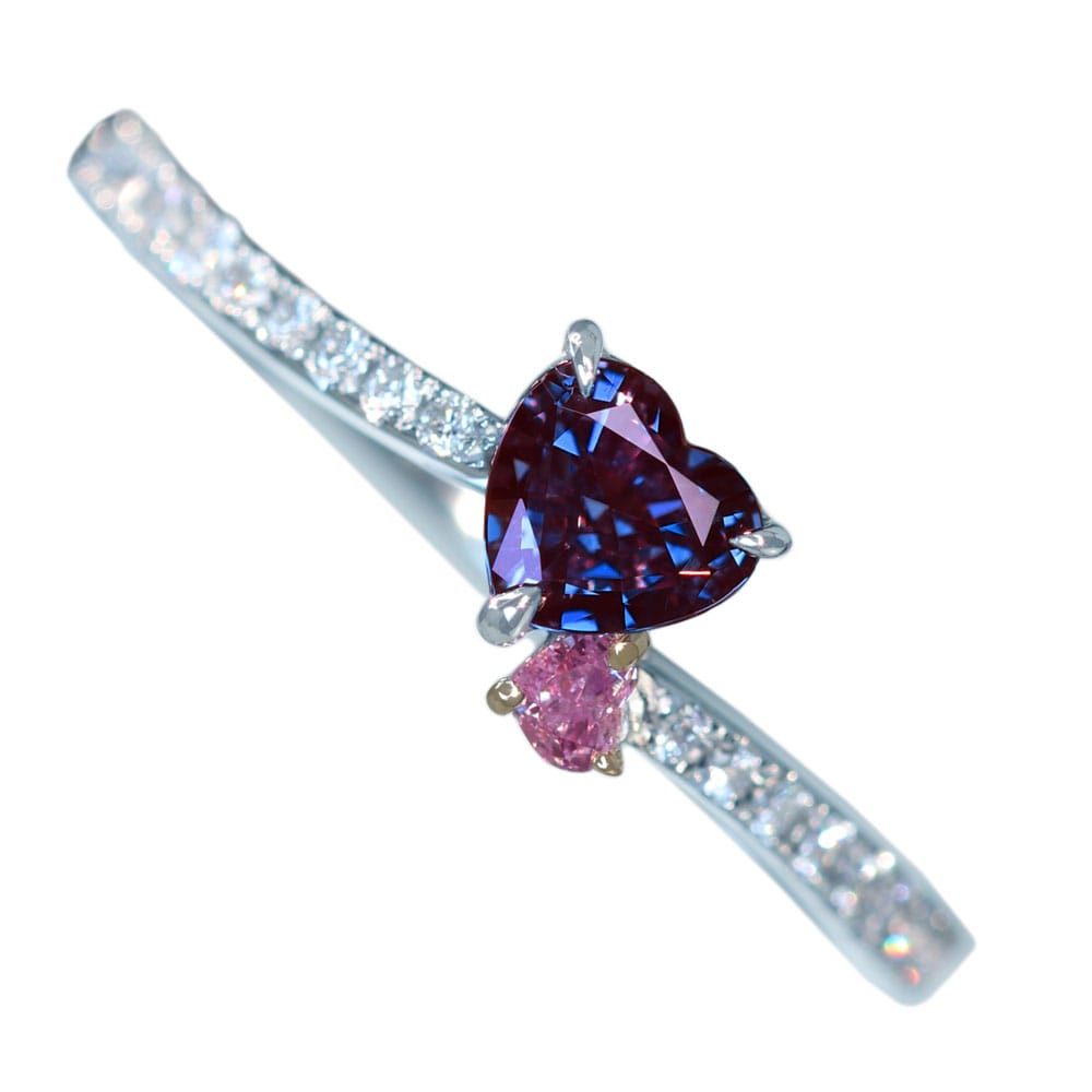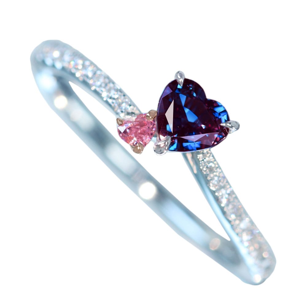 このアレキサンドライトとピンクダイヤモンドに