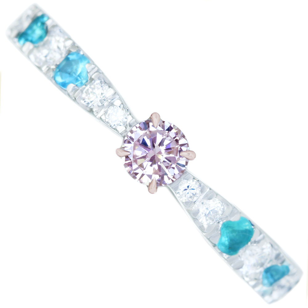 【HANDMADE】PT950/K18PG 天然ピンクダイヤモンド 0.137ct VERY LIGHT PINK VS-2 パライバトルマリン 0.136ct ダイヤモンド 0.244ct リング[CGL]