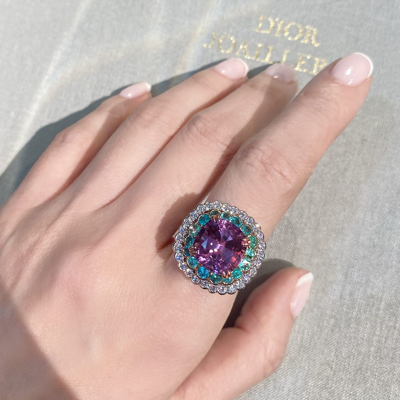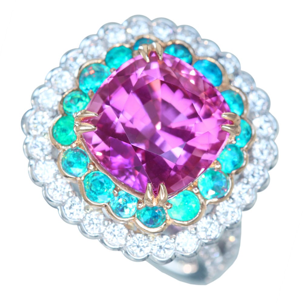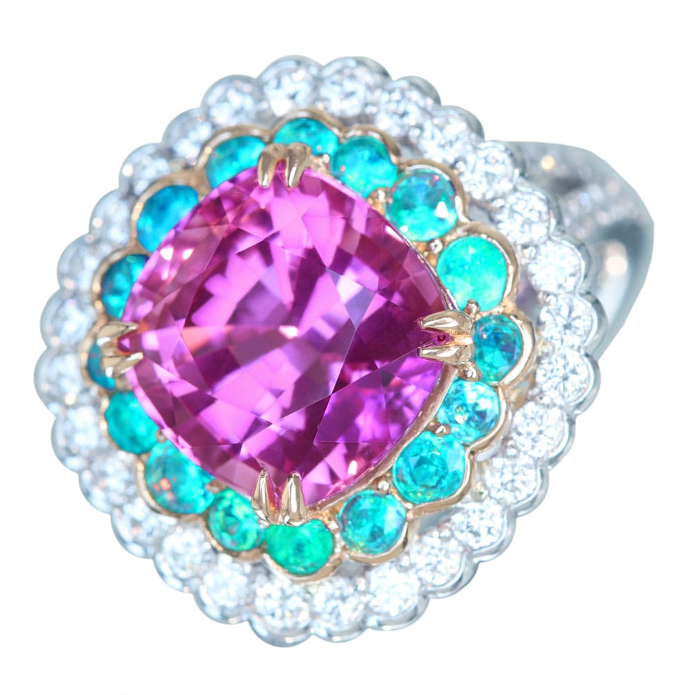 【HANDMADE】PT950/K18PG 非加熱 ピンクトルマリン(エルバイトトルマリン) 7.154ct ブラジル産パライバトルマリン total0.983ct ダイヤモンド total1.249ct リング