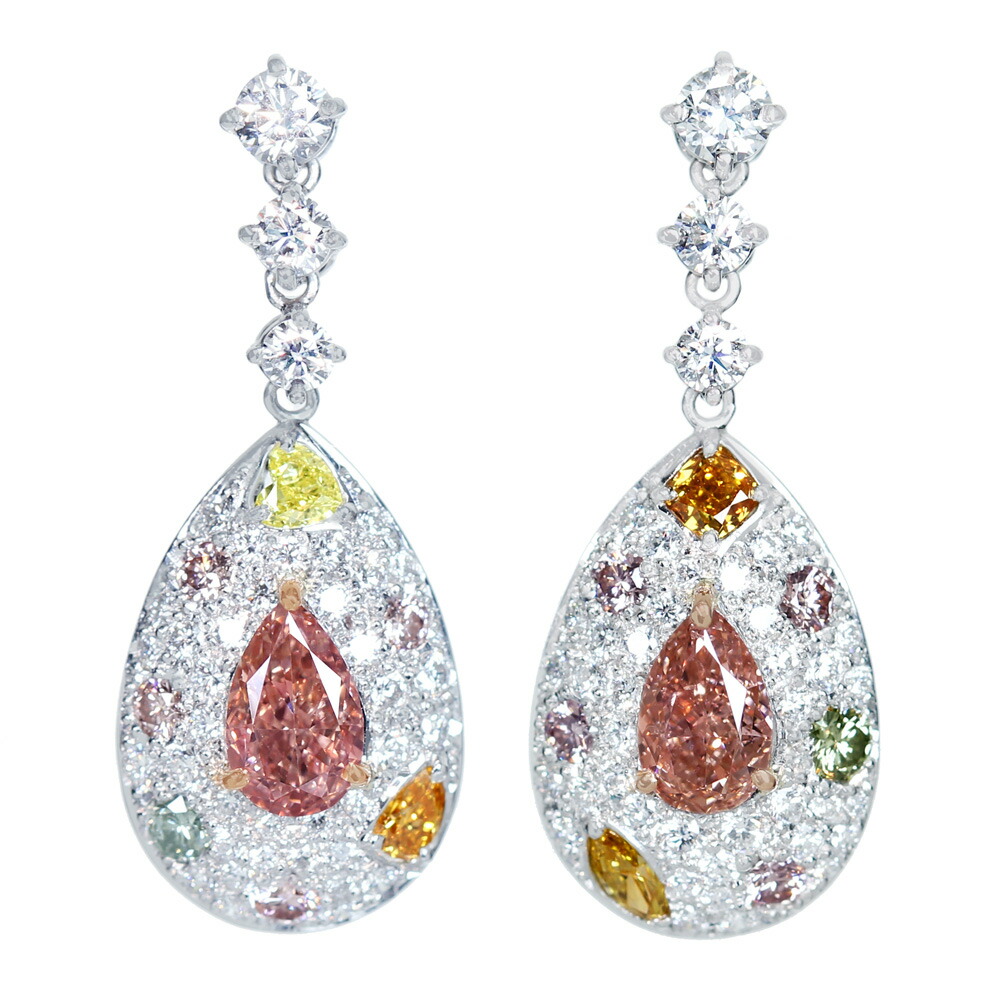 パヴェセットされた、ファンシーカラーダイヤモンドの