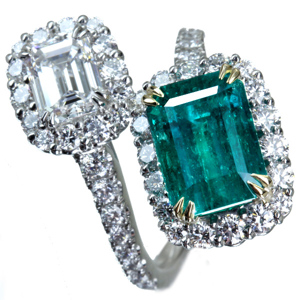 こちらの美しいエメラルドのジュエリーに使用した素材は、3ctアップの最高品質のエメラルド、そして、1ctアップの最高品質のダイヤモンド。