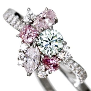 一から石を集めてお仕立てとなりますと、グリーン・ピンクダイヤモンドのルースのみでこちらのリング以上の価格は確実ですから、非常にお値打ちです。