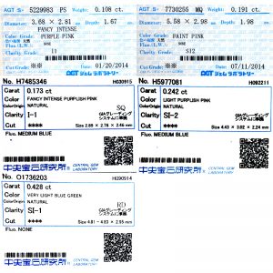 そして、ピンクダイヤモンドにおいては、FAINT〜FANCY INTENSEまで、様々なカラーグレードを使用。