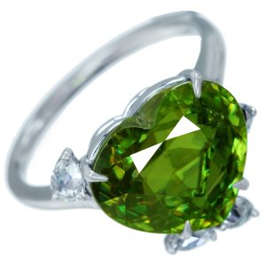 【SHINCOKI HANDMADE】PT950 スフェーン 5.26ct ハートシェイプ ダイヤモンド 0.23ct ローズカット リング