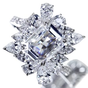【HANDMADE】PT950 1.459ct TYPE2A D VS1 エメラルドカットダイヤモンドリング マーキス・ペアコレクション ※中央宝石研究所ソーティングシート付